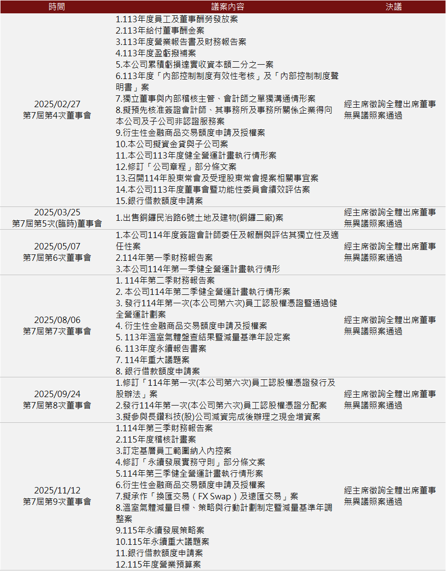 4.為落實公司治理,已針對2024年董事會及董事進行績效評核,並提報2025年2 月董事會。