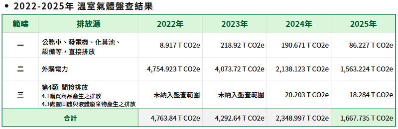 計算本公司歷年總排放量,請參考下表 :