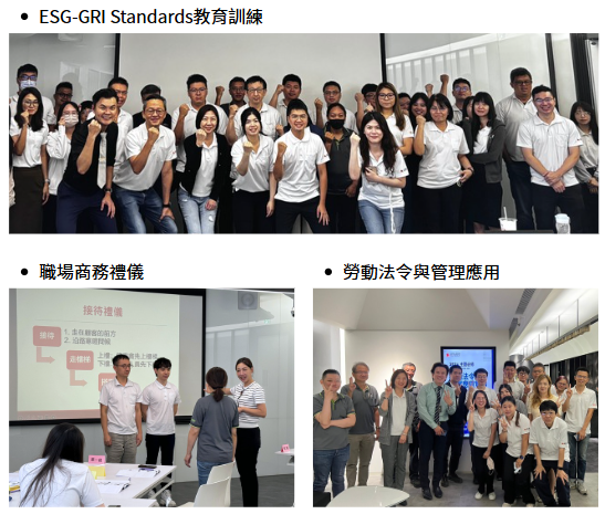 為強化員工多元職能與職場素養,規劃通識課程涵蓋勞動法令、商務禮儀、ESG準則與資安意識等主題,透過課程推動,公司期望打造更具責任感、規範意識與永續行動力的工作文化。為使同仁學習不中斷,除了將實體課程轉為線上課程外,更積極開發更多不同的學習管道與方式,向同仁分享內外部知識與資訊。