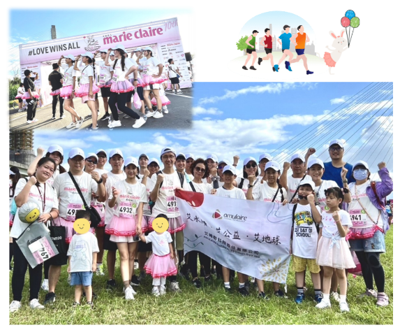 艾姆勒關注癌症防治議題並鼓勵員工培養運動習慣,於2024年組隊參與裙襬澎澎乳癌防治公益路跑,共 28人參與,路跑合計里程共 112公里,不但支持台灣癌症臨床研究發展基金會外,更透過活動凝聚員工向心力。
